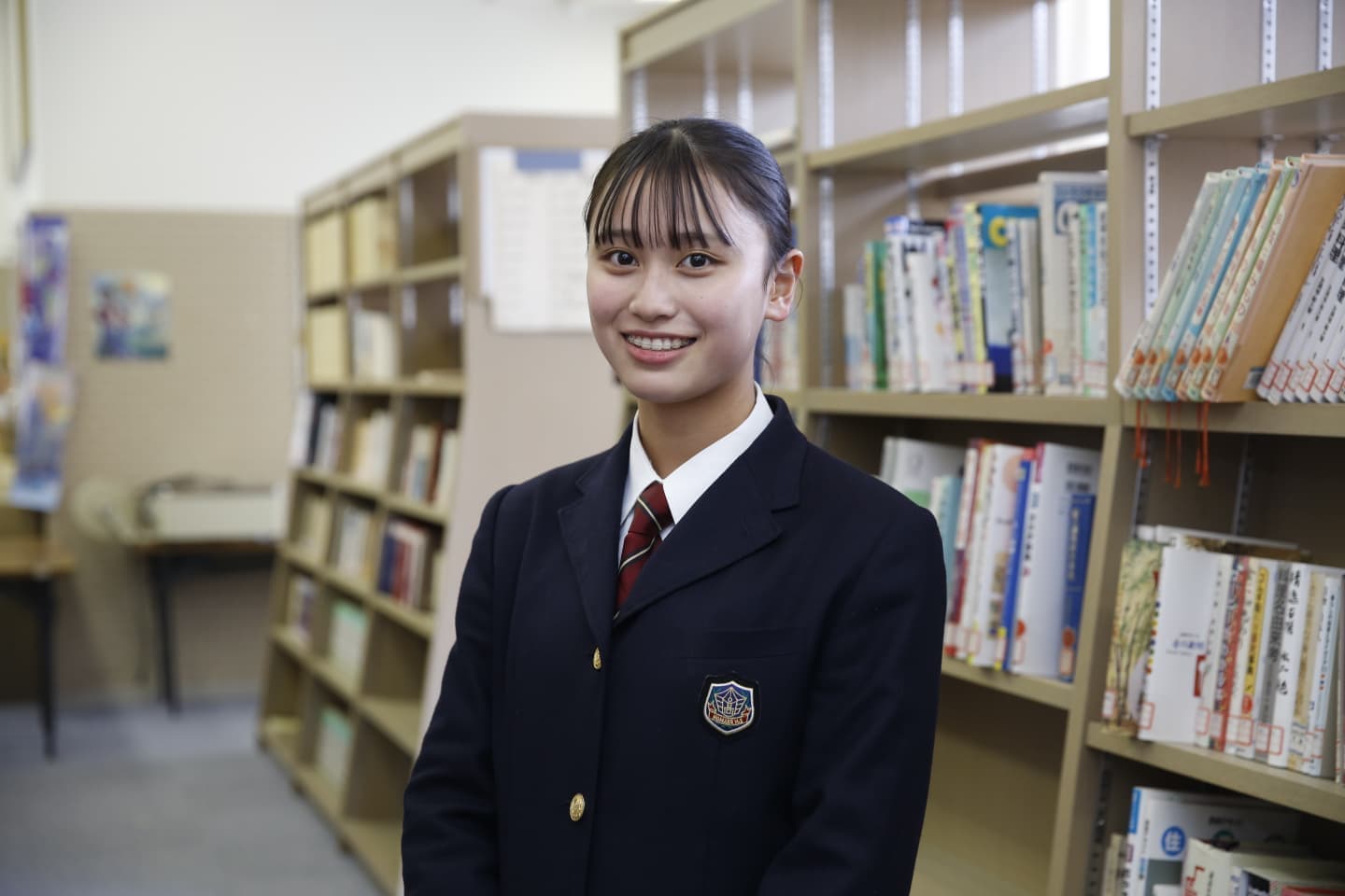 私は、社会の流れを知ることと高校卒業後の進学を考え、総合オフィスコースを選びました。1年生のときは、ビジネスの基礎や様々な企業活動について学びました。中でも1番印象に残っているのは、インターンシップです。経験を通してあいさつやコミュニケーションの大切さをさらに意識するようになりました。これからもあいさつや言葉のキャッチボールを大切にし、卒業後は大学に進学し、1人でも多くの人に笑顔を届ける夢を叶えたいです